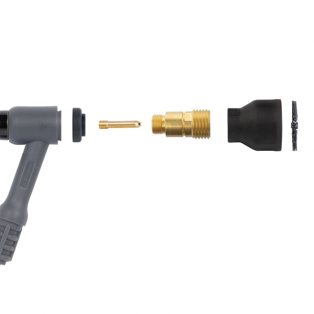 The cup-shaped gas nozzle and precise strainers ensure an equal distribution of the gas shield which is crucial for achieving perfect metal connections. The inclusion of black nozzles with an advanced gas flow direction system further enhances the effectiveness of the gas shield, promoting higher quality welds. The inclusion of black nozzles with an advanced gas flow direction system further enhances the effectiveness of the gas shield, achieving higher quality welds.