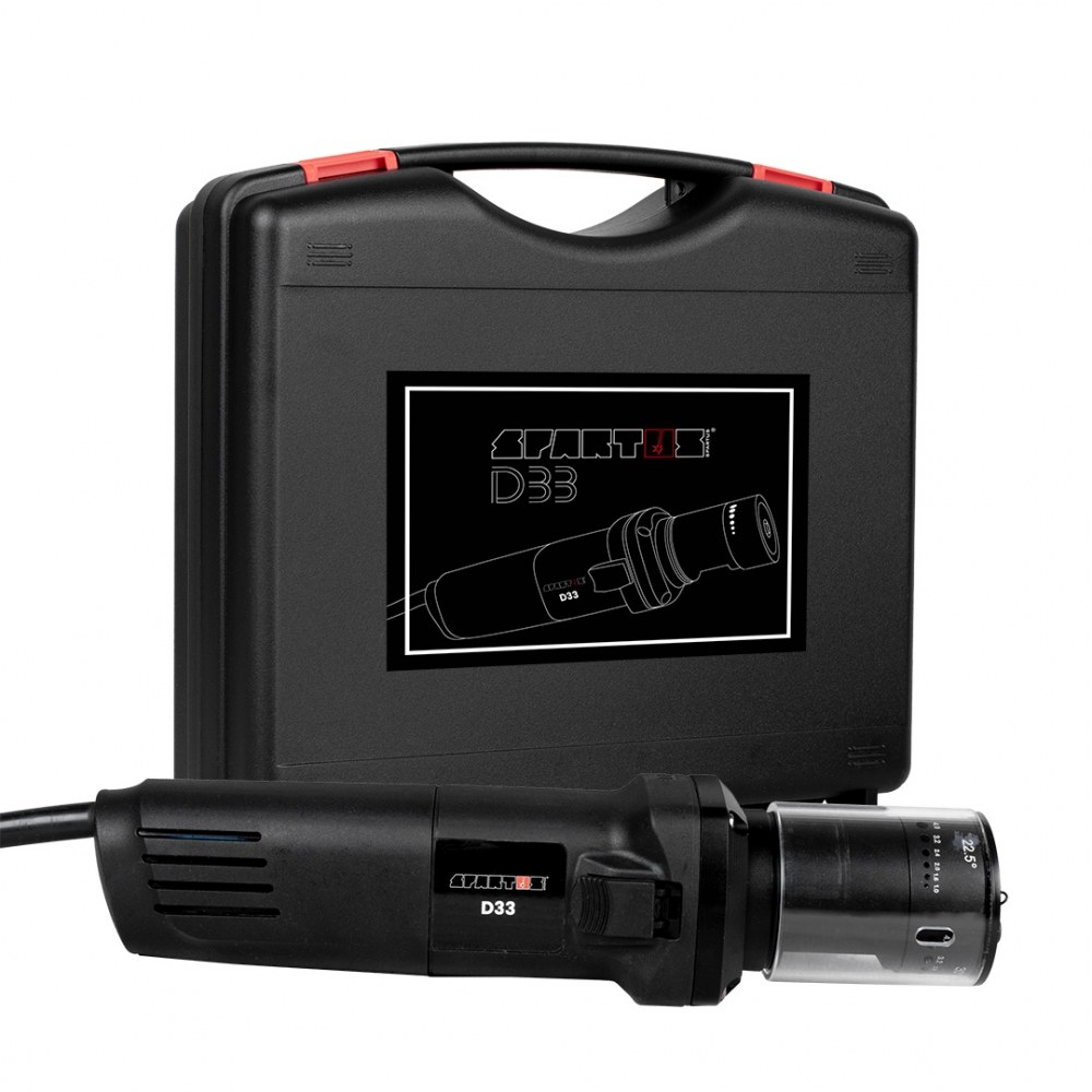 The SPARTUS® D33 handheld sharpener is a small-sized, manual sharpener for tungsten electrodes used in TIG welding. It is powered by a single-phase 230V source power. The SPARTUS® D33 handheld sharpener allows for precise sharpening or cutting of the end of the tungsten electrode, according to technological requirements.