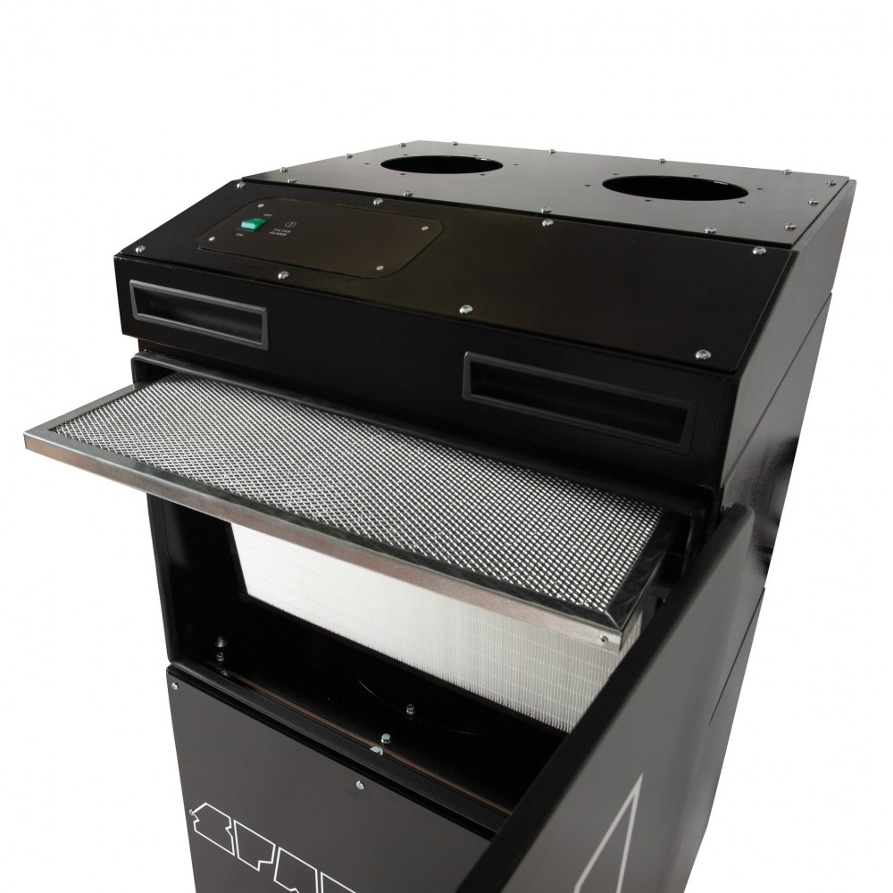 - High performance: Filtration capacity of 850 m³/h for each of the two workstations ensures efficient air cleaning.
