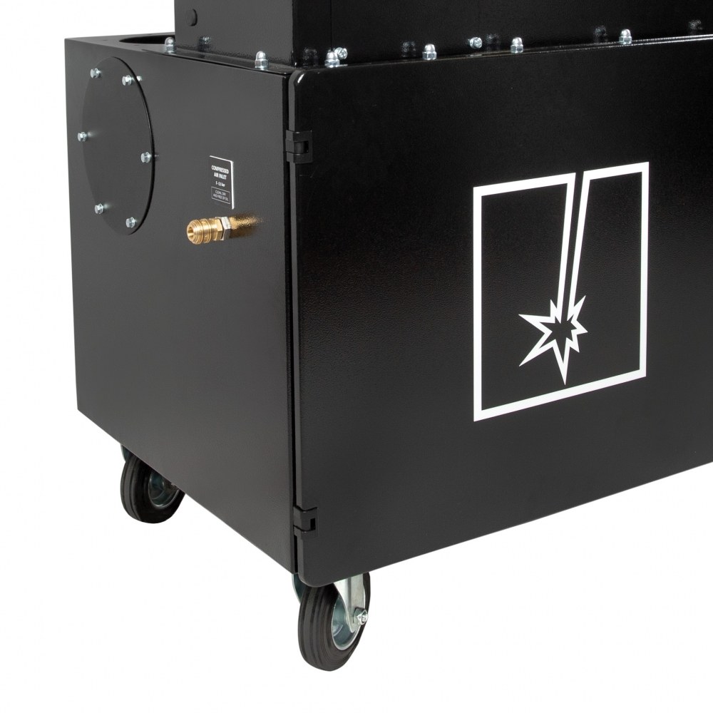 The mobile welding fume extractor ProVent M is designed for effective filtering of dust generated by activities such as welding, grinding, cutting, and processing of plastics and metals. The two filtration elements used in the device achieve an efficiency level of 99% in removing particles up to 1 micrometer, combined with a standard spark arrestor system, ensuring high air purification efficiency. The SPARTUS® ProVent M model is equipped with a manual filter regeneration system, supported by a 10-liter compressed air tank. The sturdy metal construction is designed to optimize usable space.