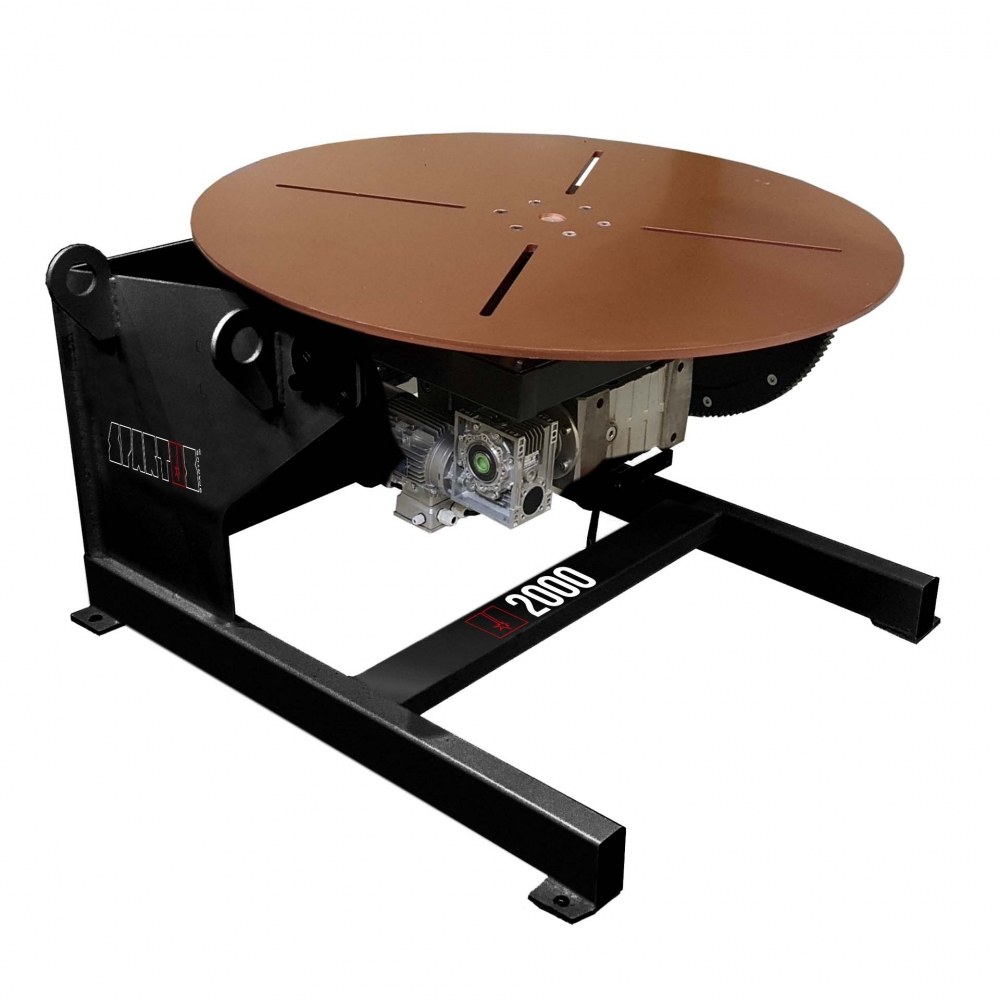 Welding positioners SPARTUS® with a load capacity from 300 kg are equipped with motors with electromagnetic brakes, which ensure work safety. Additionally, forced cooling used in the rotation motors guarantees failure-free operation for many years. The integrated control system ensures smooth adjustment of the rotational speed and the direction of rotation as well as the gradual, automatic adjustment of the disc tilt angle. It is equipped with a brush system, it is possible to connect the mass of the welding machine directly to the body of the positioner.